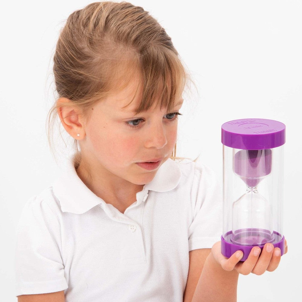 The TickiT® ColourBright 15 Minute Sand Timer in purple is the perfect tool for supporting longer activities such as quiet reading, homework time, or mindfulness sessions. The vivid purple sand flows through a tough, shatterproof container that withstands frequent handling.