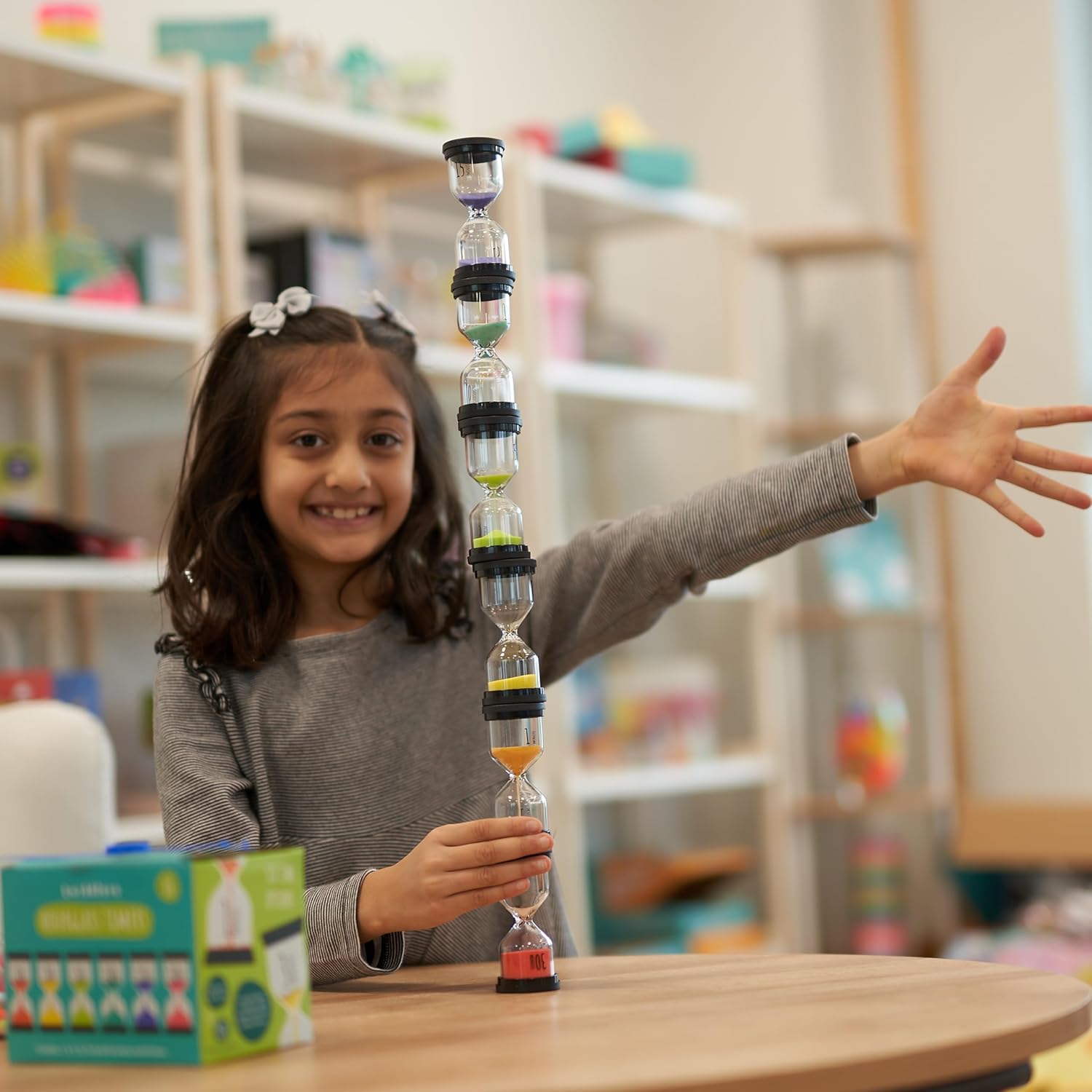 Enhance time management with The Twiddlers 6-Piece Sand Timer Set, designed for durability, versatility, and fun. Each timer features a sturdy borosilicate glass body with thick PVC stoppers, ensuring long-lasting use in homes, classrooms, and offices. Whether timing study sessions, cooking, games, or daily routines, these reliable hourglasses help track time effortlessly. With countdowns of 1, 3, 5, 10, 15, and 30 minutes, they provide the perfect solution for structured activities and improved focus.