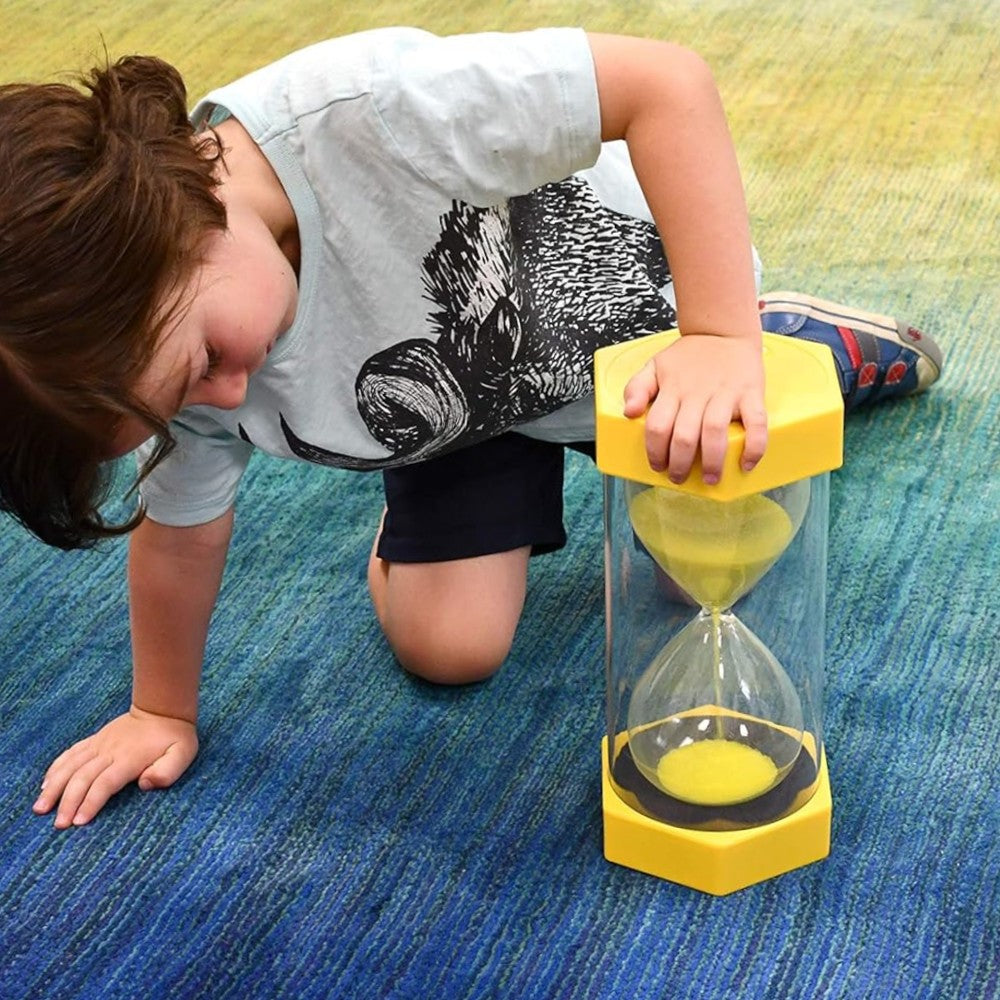 Housed in a robust, shatterproof plastic case, this oversized sand timer is built for frequent use in educational settings. Its size not only makes it more engaging but also helps children focus on tasks like tidy-up time or brushing their teeth. Ideal for supporting routine, time awareness, and transitions in early years and SEND environments.